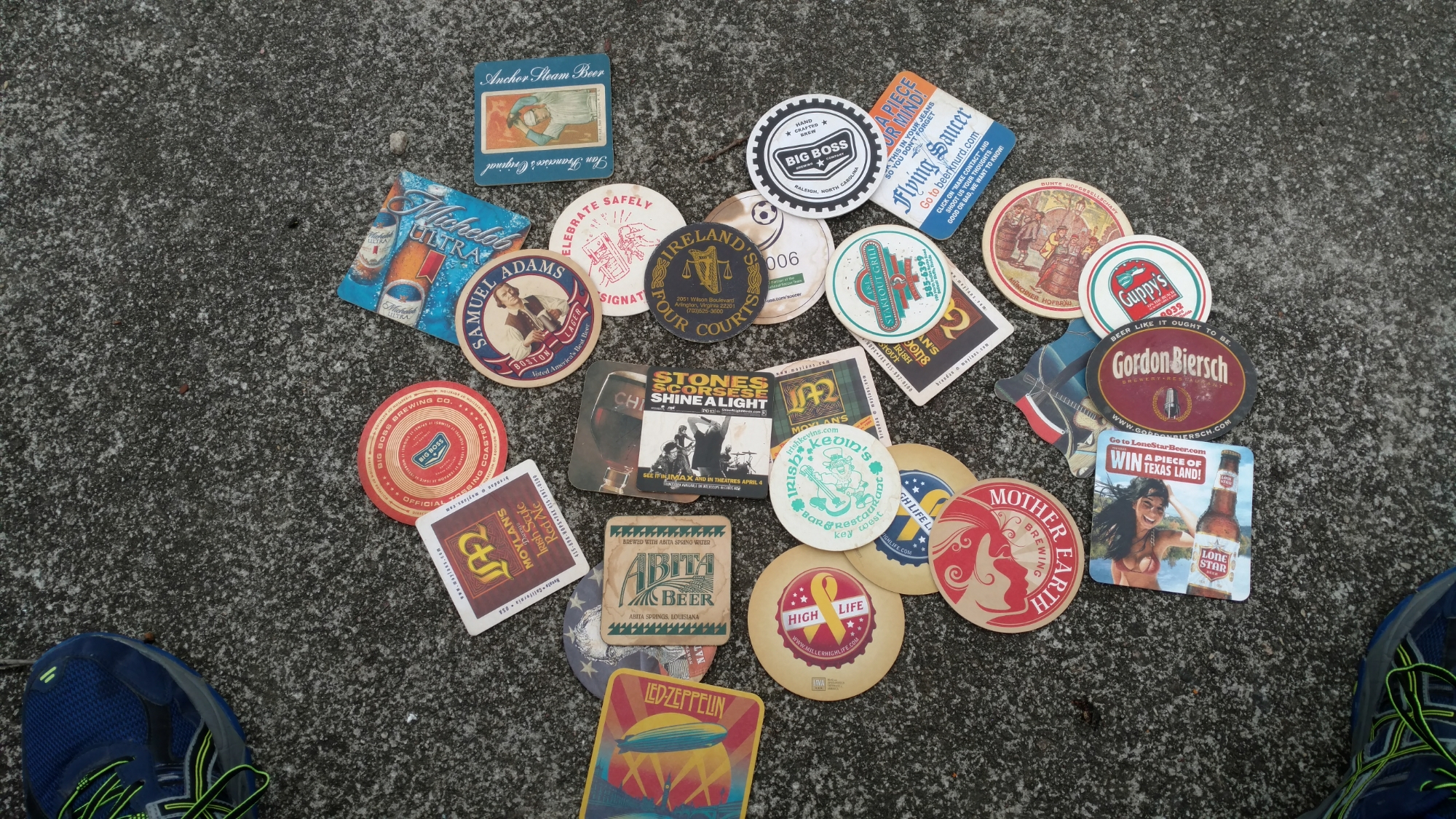Digging in an old shoebox full of writings in notepads, all these coasters greeted me.