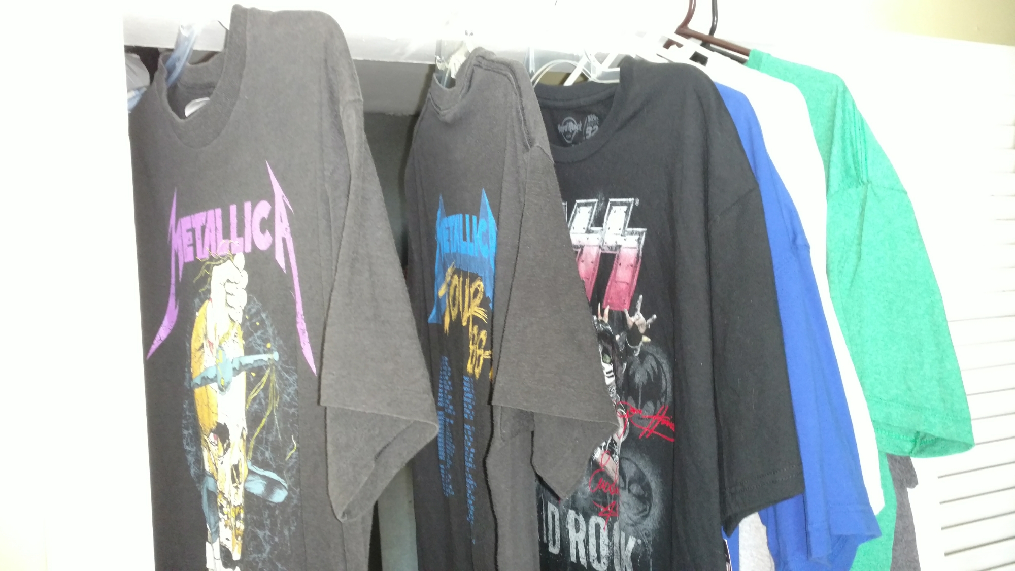 This is part 1 of that shedding. These are going on eBay. Some cool vintage tees, including those Metallica ones that I got at shows in 1988-89. Looking at other people selling them, I’m guessing I’ll get between $50-$200 each. That’ll go a long way in paying down the debt pile. Being XL shirts helps, as the fit like smalls…