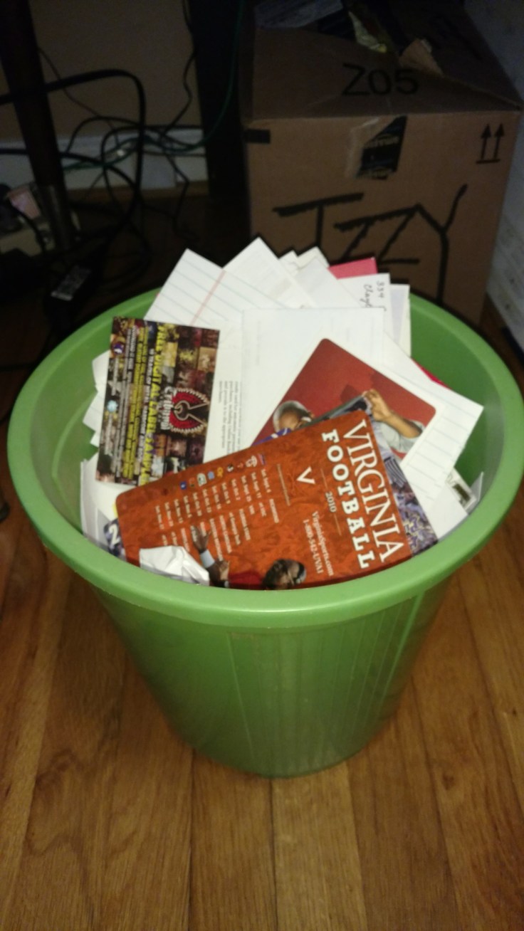 Found such important things like a rental agreement for a U-Haul from 2010, my receipt for my last electric bill when I lived in Greenville, NC, a bunch of envelopes with addresses on them for my friends that are no longer valid, more refrigerator magnets, never activated credit cards that expired years ago, printed emails from over a decade ago, condolence cards from my dad dying and on and on and on.