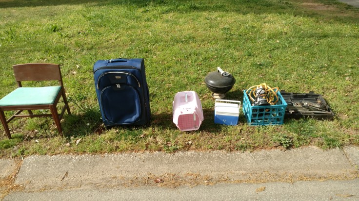 Purged via Craigslist today… the already mentioned suitcase, a cat carrier, 60s side chair, small Weber grill, small cooler, Wagner power roller, and a 2 1/4 ton hydraulic floor jack.
