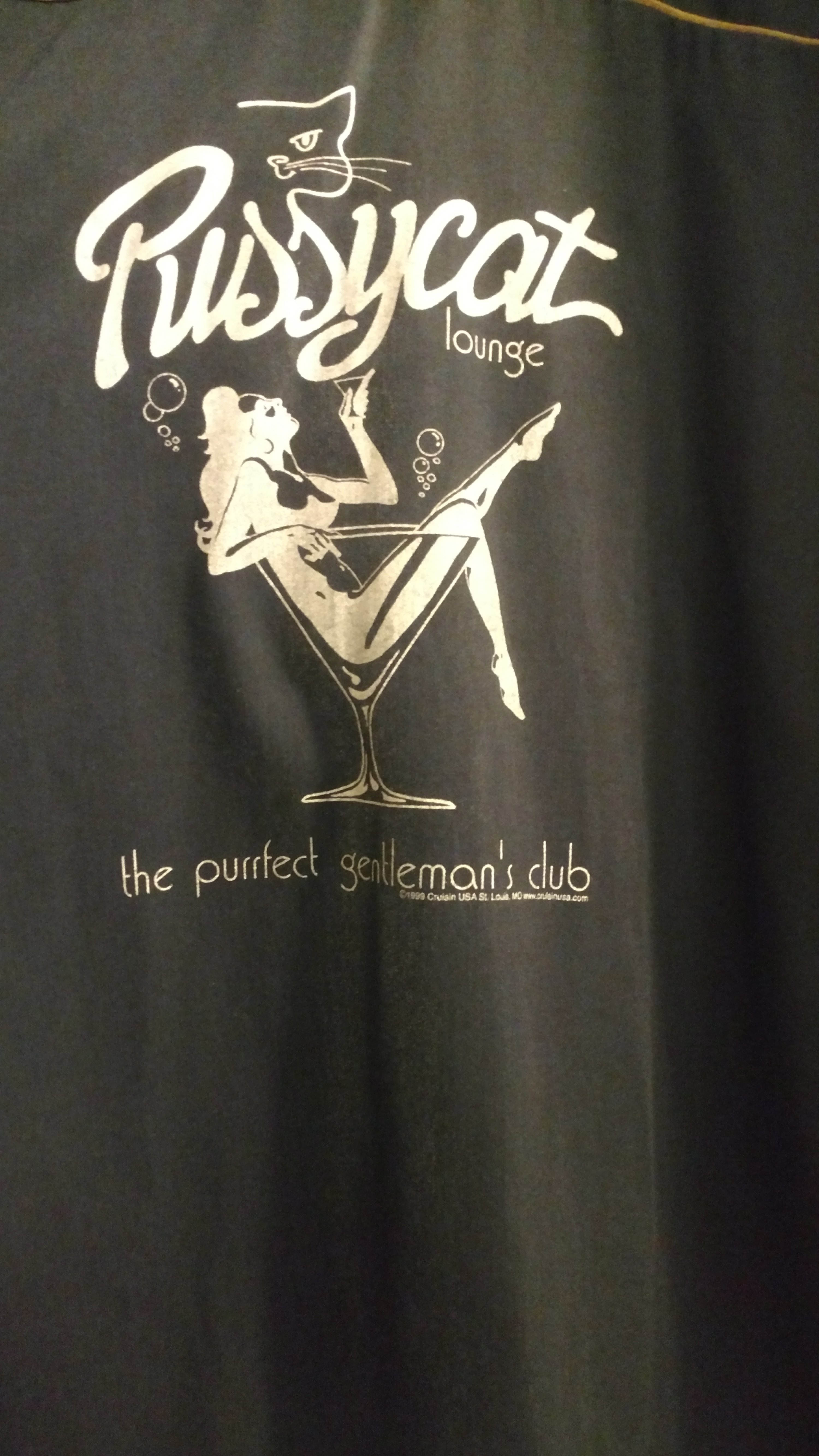 I bought it because I had a glass from The Pussycat Lounge. Some old thrift store find. I used to buy glasses all the time. Vintage, cool ones. You don’t find them in the wild as much anymore. eBay, Etsy and all…